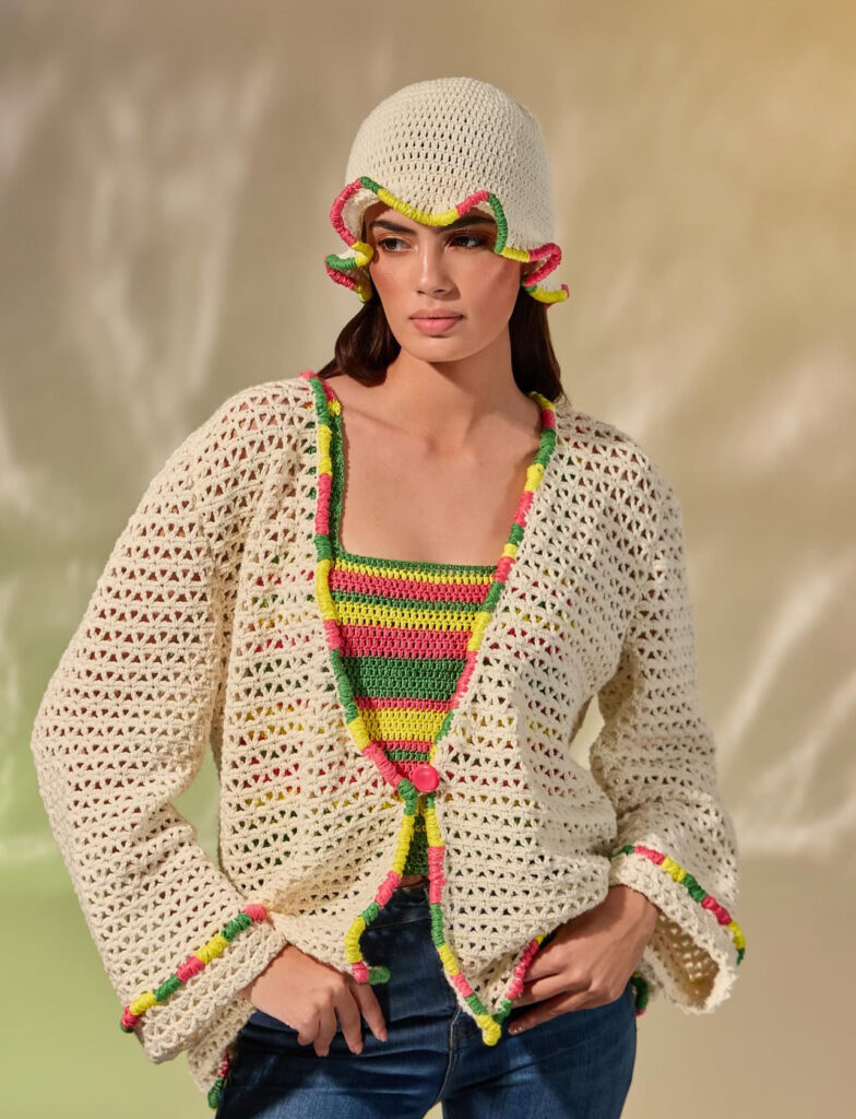 The duo began experimenting with eco-friendly materials, using recycled cotton and upcycled printed fabrics. During lockdown, they learned crochet by hand, turning it into an artistic practice that gave rise to their first crochet bag. Launched in spring 2020, it became an instant success, marking the beginning of Steffy’s renewed journey toward meaningful, handmade craftsmanship.